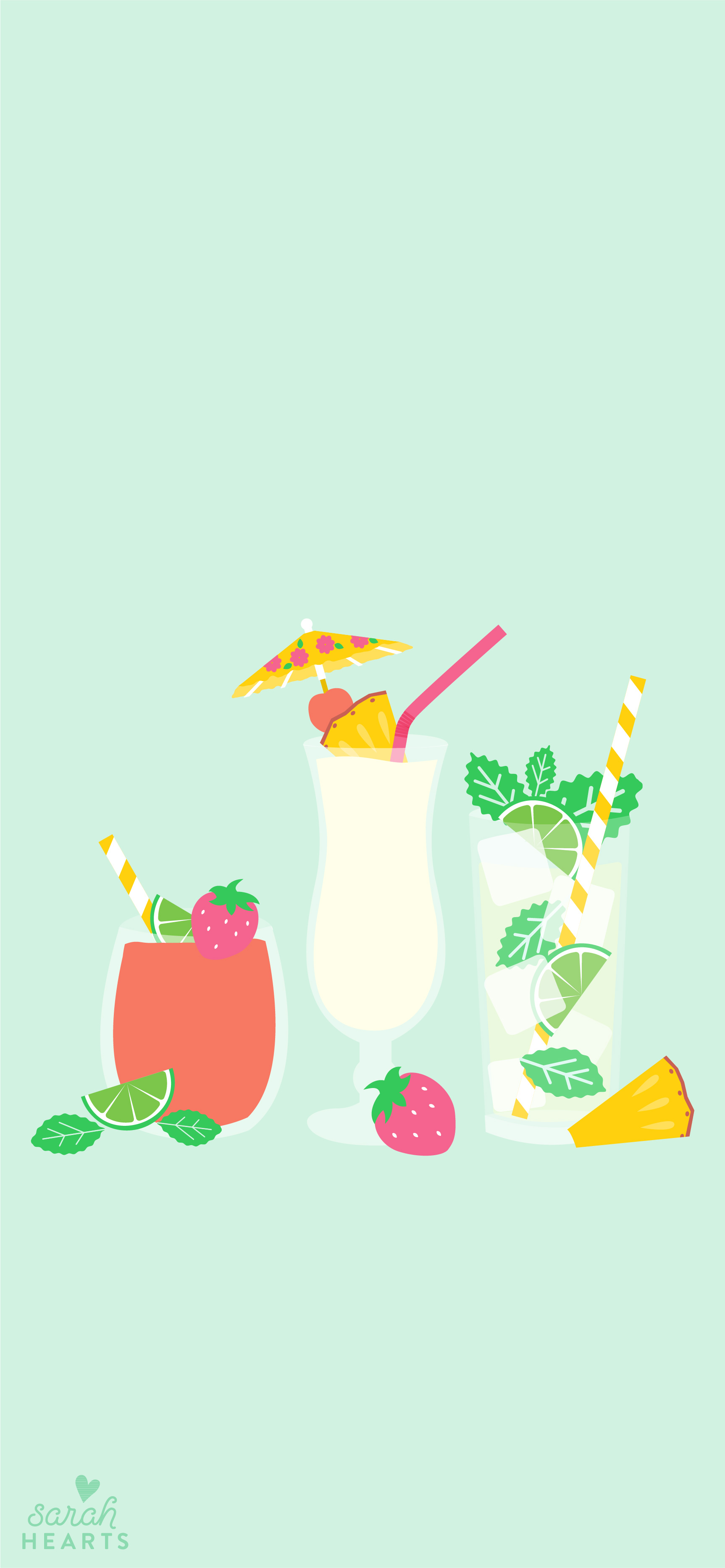 Long days, warm air and a delicious beverages with umbrellas. All signs of summertime, am I right? This months wallpaper is inspired by the season and my favorite drinks to sip on pool side. A mojito loaded with fresh mint, a frozen strawberry daiquiri, and a piña colada complete with a maraschino cherry and paper umbrella—all cute enough to want to drink! Enjoy this wallpaper on your phone, tablet and computer.
